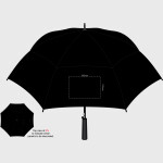 Premier Swiss Peak umbrella with automatic opening. It has an eight-panel, 190T showerproof pongee canopy with 58cm ribs. Tornado has a windproof eight-rib fibreglass frame and a robust metal shaft with a soft-touch handle. It is presented in an impressive Swiss Peak gift tube.